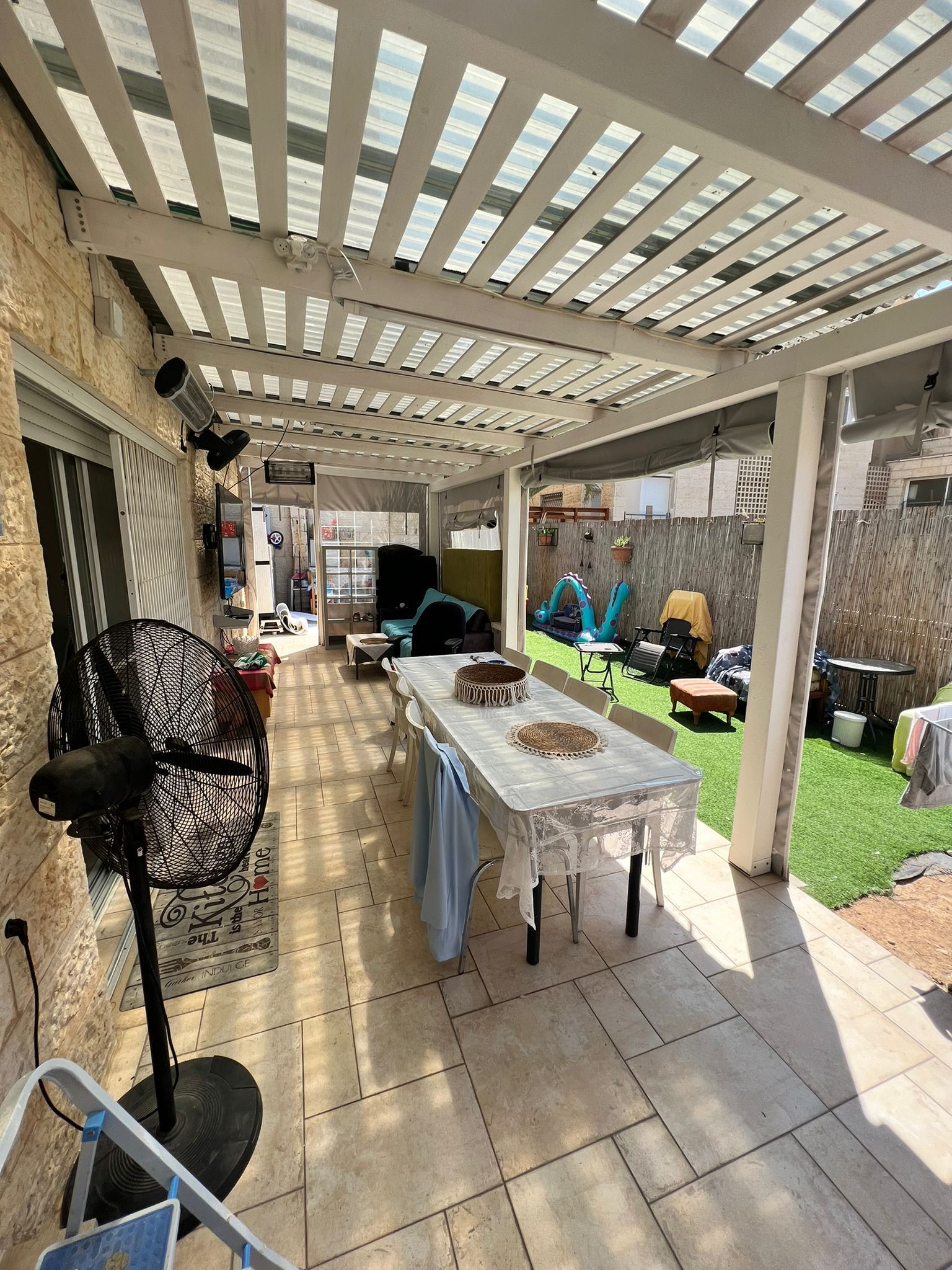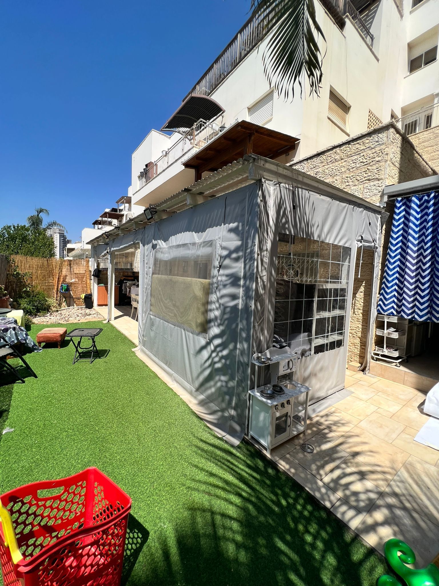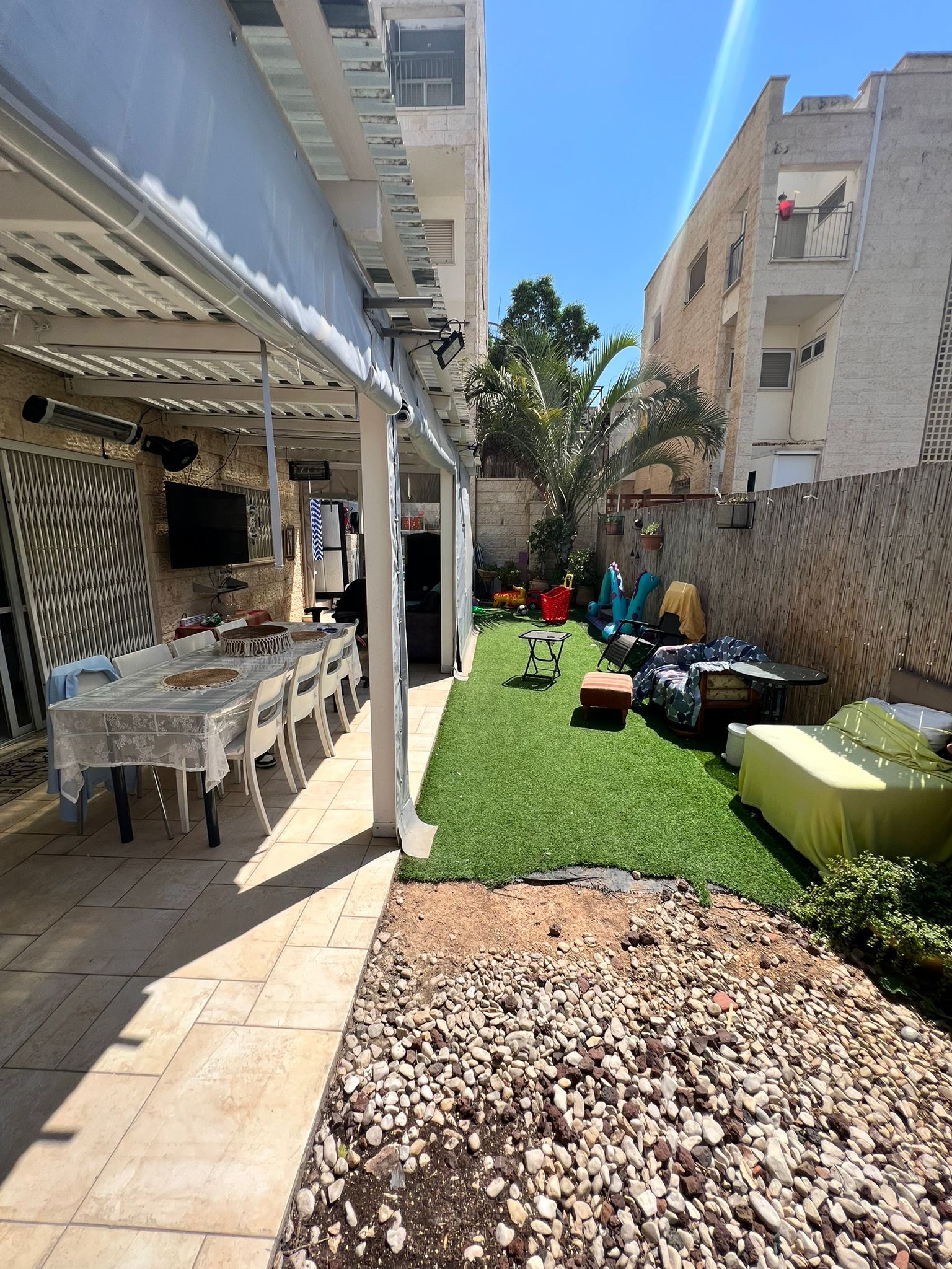 דירת גן 3 חדרים משופצת בחלקה. פינת אוכל מוגדרת, סלון מרווח, גינה מרוכזת גדולה של 82 מ"ר, פרגולה ענקית עם מרקיזה, חניה מקורה ומחסן.